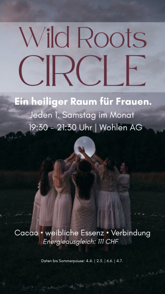 Tauche ein in einen herzlichen, sicheren und verbindenden Raum für Frauen. Im Wild Roots Circle kannst du einfach sein, deine Wahrheit teilen, dich inspirieren lassen, in eine tiefe Cacao Zeremonie eintauchen und deine eigene Urkraft spüren. Ob Austausch, Rituale oder Reflexion - hier bist du gehalten, gesehen und verbunden.